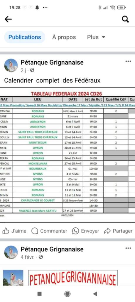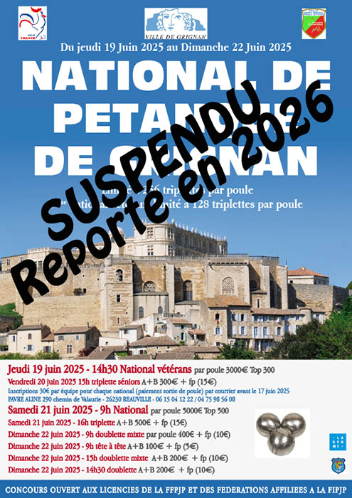 - Pétanque Grignanaise : Annulation du national 2025.