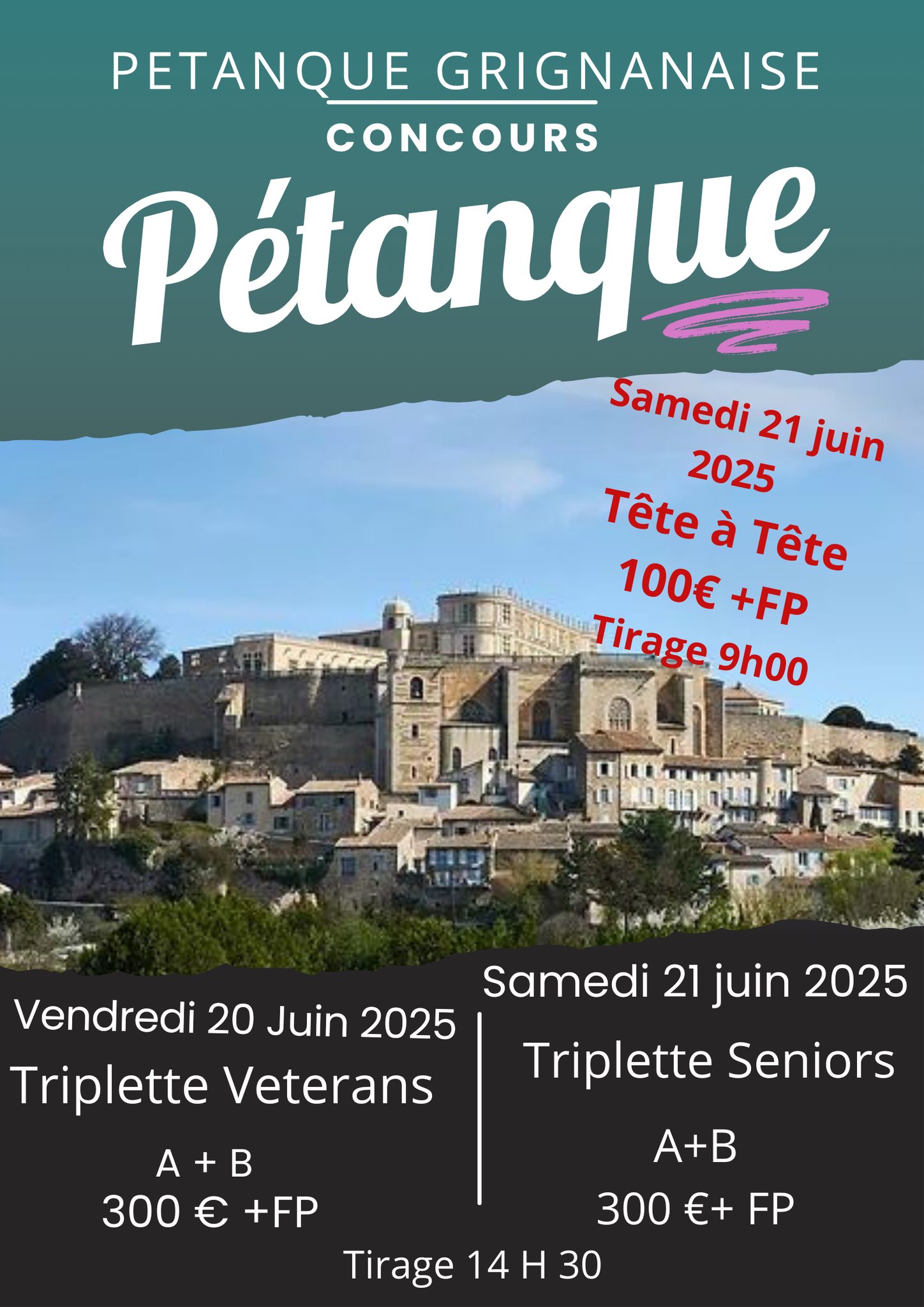 - Le National de la Pétanque Grignanaise aura lieu du 23 au 26 juin 2022. (Affiche disponible ici)