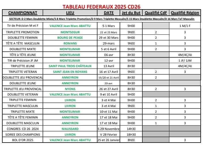 - Calendrier concours Fédéraux Drome